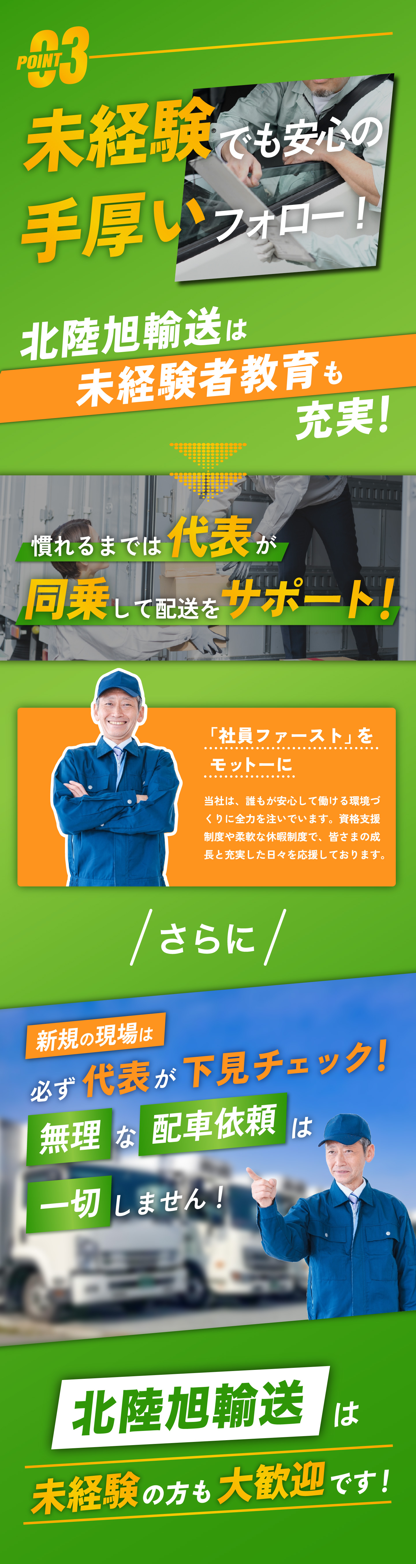 有限会社北陸旭輸送 (以下「当社」)は、以下のとおり個人情報保護方針を定め、 個人情報保護の仕組みを構築し、全従業員に個人情報保護の重要性の認識と取組みを 徹底させることにより、個人情報の保護を推進致します。 個人情報の管理 当社は、お客さまの個人情報を正確かつ最新の状態に保ち、個人情報への不正アクセス・紛失・破損・改ざん・漏洩などを防止するため、セキュリティシステムの維持・管理体制の整備・社員教育の徹底等の必要な措置を講じ、安全対策を実施し個人情報の厳重な管理を行ないます。